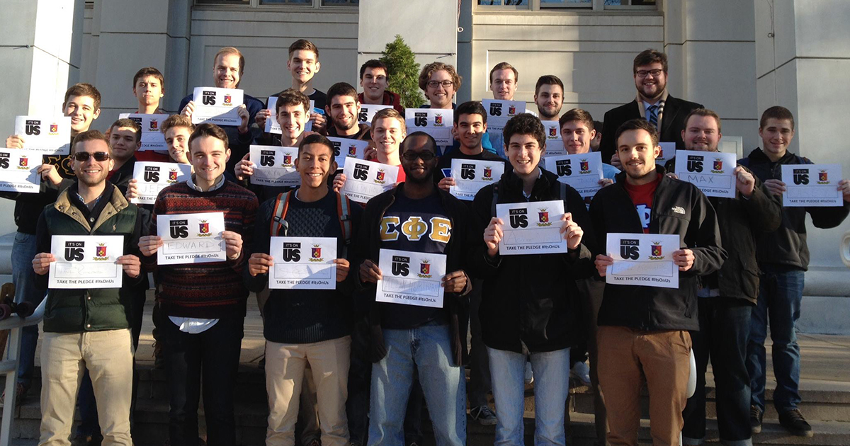 Kevin Koestler, Texas Tech ’15, and Alex DeRossi, Texas Tech ’16, are taking the White House’s sexual assault prevention campaign “It’s On Us” to a new level. As the semester came to a close, the two decided to end the year by brining awareness to the issue of sexual assault and challenging others to do the same. So, at their last chapter meeting of the semester, they had every member of their chapter sign a flyer showing their support for the It’s On Us campain. Next, they posted a photo on Facebook and challenged others to follow their lead.